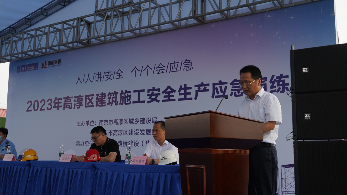 为检验建筑施工现场安全生产应急救援预案的科学性和可靠性,规范建筑施工现场生产安全事故的应急管理和应急救援程序,确保发生事故时应急救援响应及时、有效应对,南京市高淳区城乡建设局联合建发集团于6月16日举办2023年度高淳区建筑施工应急演练,南部路桥承办。