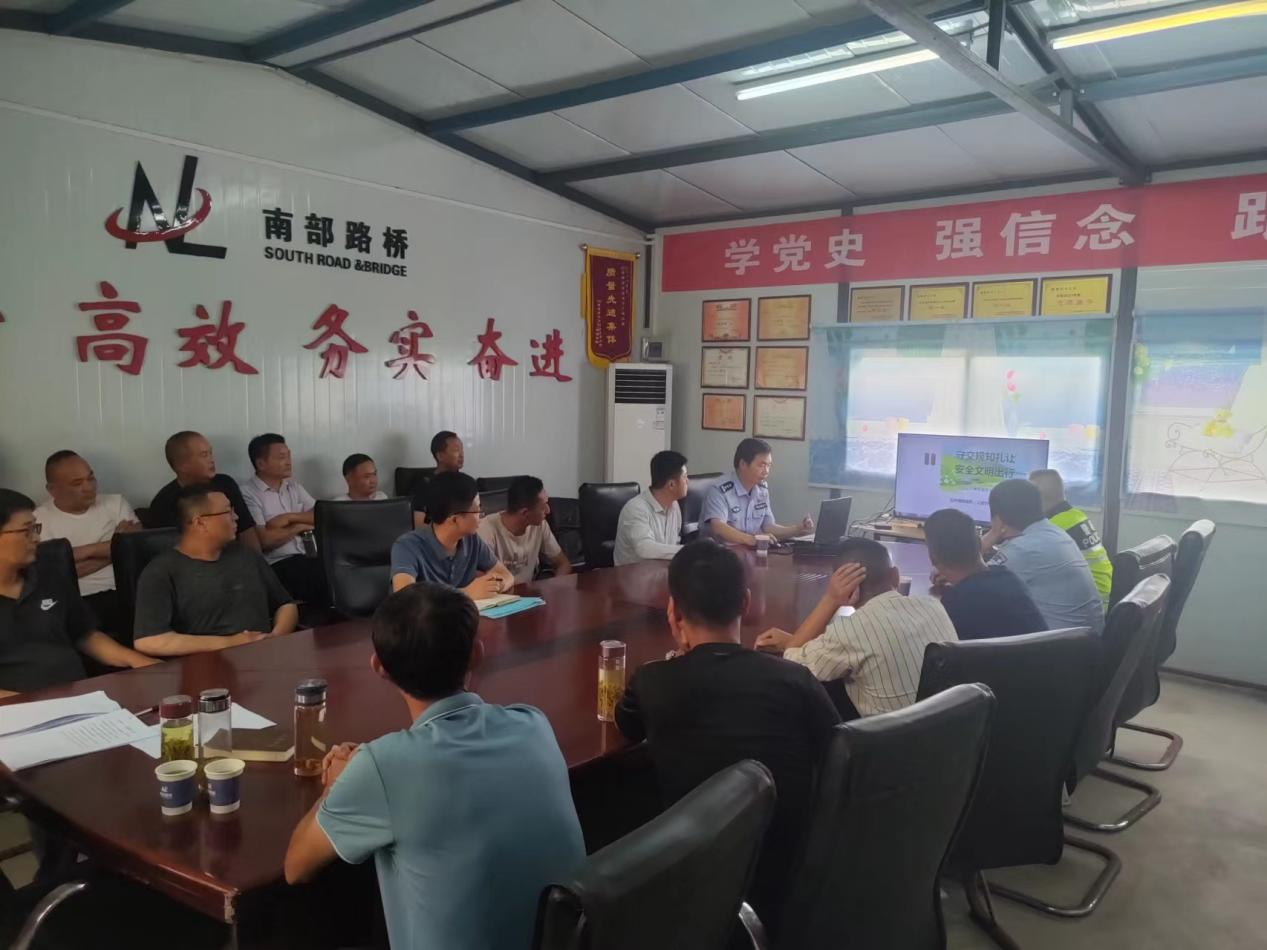 为切实做好“减量控大”道路交通事故预防工作,加强企业主体和车辆驾驶人员安全意识,营造“安全生产月”交通安全宣传氛围,南部路桥邀请高淳区公安分局交警大队与固城交警中队民警到公司驻地开展交通安全宣传活动。路面分公司安全管理人员、合作运输单位管理人员及全体驾驶员参加此次活动。
