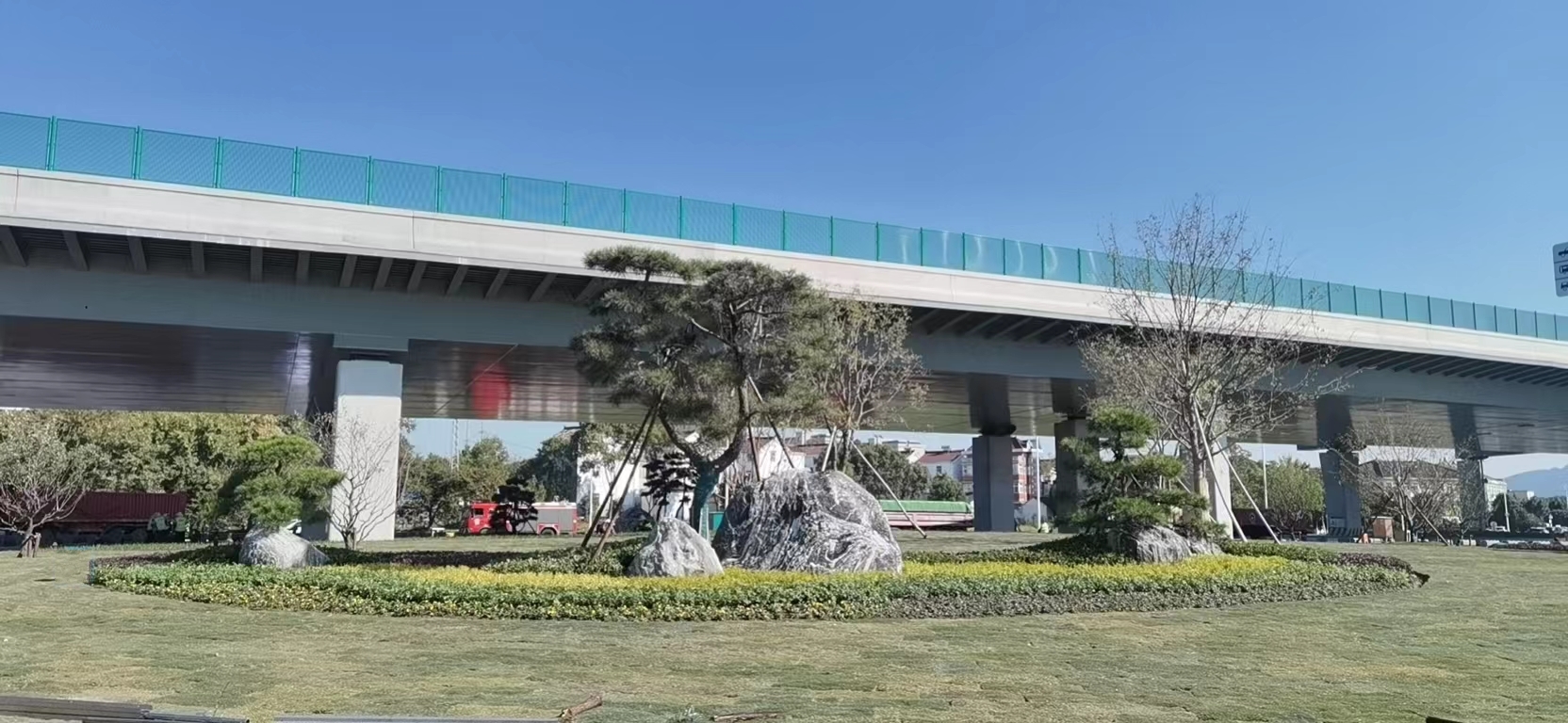 除硬质铺装及混凝土破除外运等施工外,在绿化升级工程的“梳妆打扮”下,高速道口增添了不少“新绿”。路苑公司充分考虑色彩、高度以及周边环境等因素,不断优化设计方案,调配特色苗木花草,经过前期选苗、采购造型黑松,布置景观石、立牙石,地形整理等施工,最终形成了花草组合有序、乔灌木层次分明的“迎宾门户”景观,进一步提升了城市窗口“颜值”。